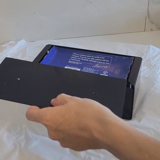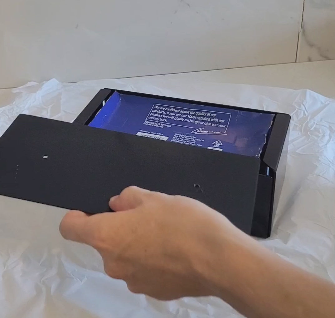 This simple elegant design allows you to keep your tissues mounted to the wall. Mount the backing plate to the wall with screws and simply slide the box over the plate when replacing with a fresh pack.